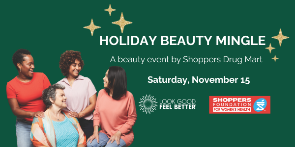 On November 15th, visit your local Shoppers Drug Mart and show yourself a little love with a beautiful makeover and skin care consultation. For each $10 ticket sold, $5 will go to Look Good Feel Better supported by Shoppers Foundation for Women’s HealthTM. Plus you’ll receive a $5 ticket redeemable for cosmetics, fragrance or jewellery. Tickets are on sale now at Shoppers Drug Mart locations across the country. Get your tickets today – space is limited! Feel great about feeling gorgeous!