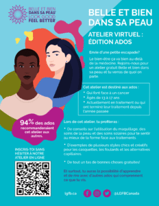 Cette affiche bilingue de 8,5 po x 11 po fait la promotion de notre atelier Rasage et soins de la peau pour hommes. Elle fournit une brève description des sujets abordés lors de l’atelier. Dépliants imprimés (4 po x 9 po) disponibles. Commandez ici.